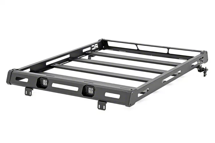 Carry More Equipment with Ease. Increase the number of things you can bring during your daily or off-road drives by installing Rough Country’s Roof Rack System with Black-Series LED Lights on your Jeep Wrangler JK. This heavy-duty accessory is specifically designed to allow you to carry more gear and equipment while keeping the items secure on the roof of your vehicle. What’s more, it flaunts a rugged black finish, giving your JL a more distinct style.