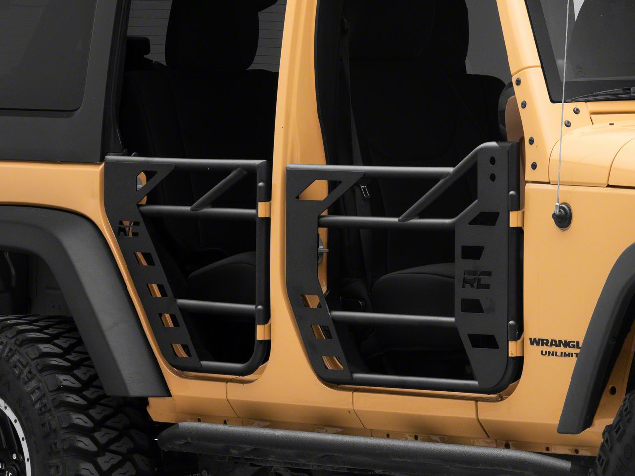 Application. These Rough Country Steel Tube Doors; Front and Rear are designed to fit 2007-2018 Jeep Wrangler JK 4-door models. Front and rear doors are included.