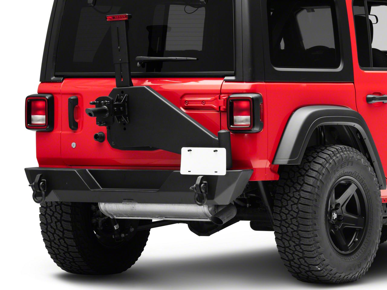 Versatile. This kit includes several features allowing you to retain popular factory appointments such as a 3rd brake light relocation system that allows you to re-position the 3rd brake light above your spare for safety and visibility. This kit also includes a spare tire mounting system designed to retain your factory backup camera, and a license plate relocation kit that allows you to re-position and illuminate your rear plates.