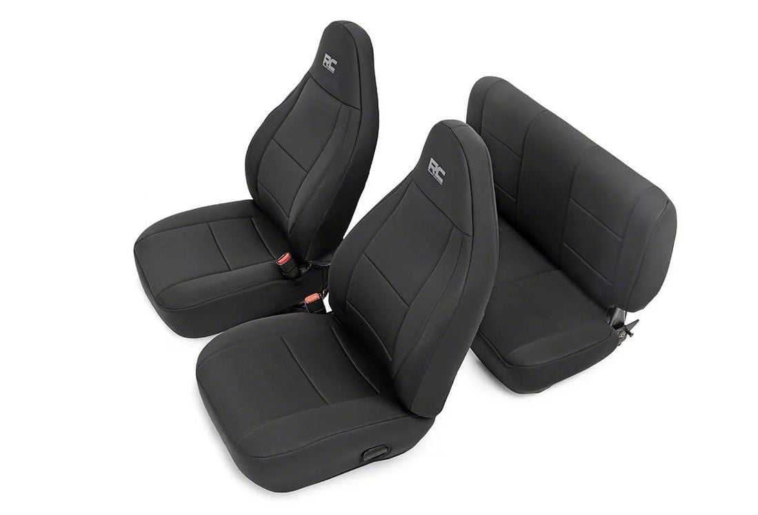 Application. The Rough Country Neoprene Seat Covers - Black are designed for the 2003-2006 Jeep Wrangler TJ.
