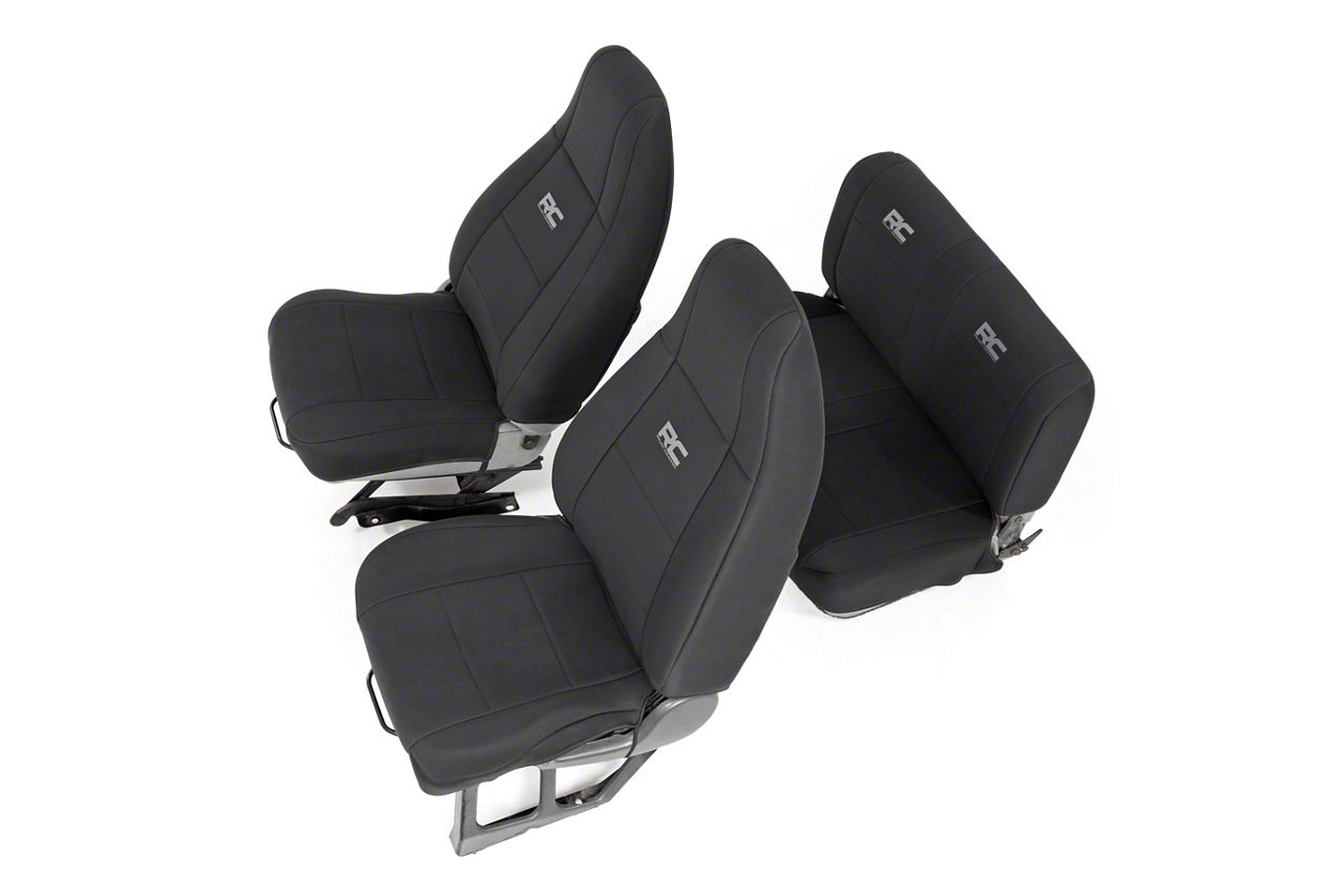 Full Protection for Your Seats. This set of Rough Country Neoprene Seat Covers; Black guarantees that your seats will stay in pristine condition, even after long periods of use. They are designed to offer full protection to your front and rear seats, and even come with headrest covers where suitable.