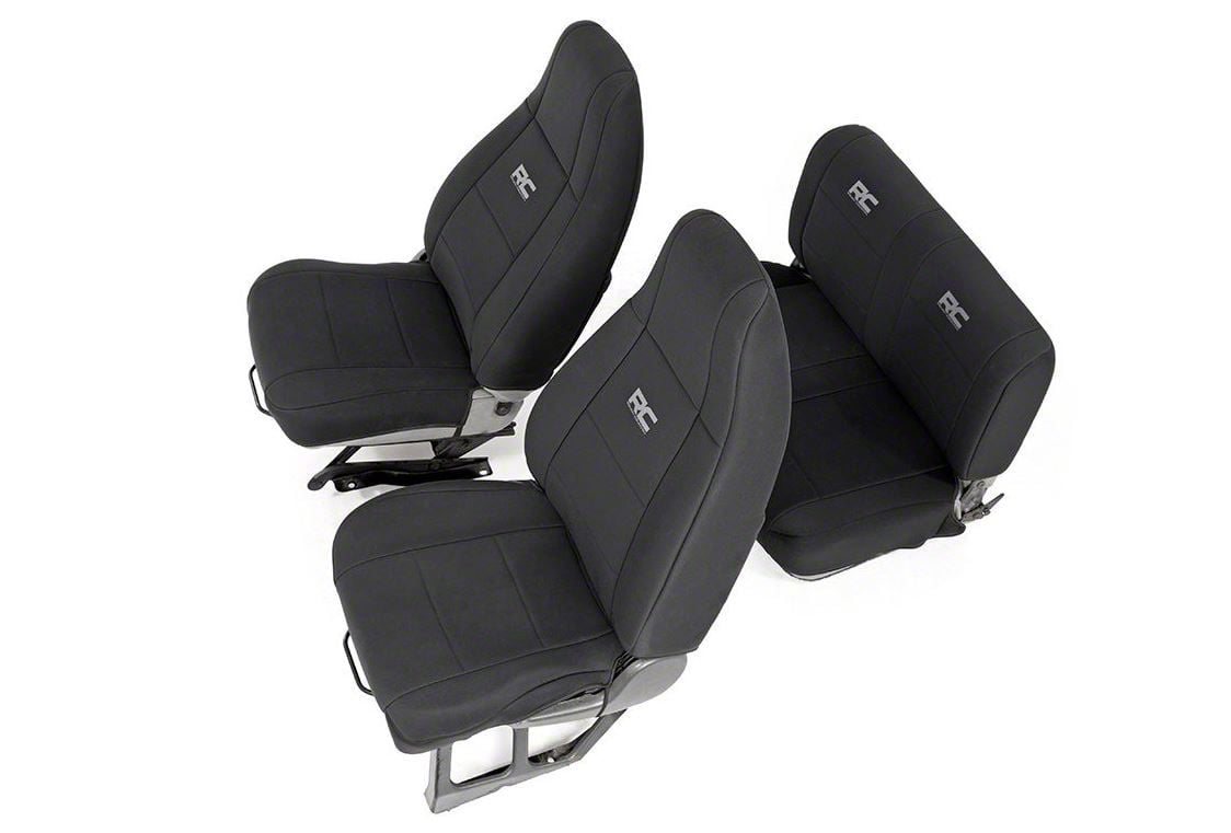 Application. The Rough Country Neoprene Seat Covers in Black is a perfect seat cover for all 1991-1995 Jeep Wrangler YJ models.