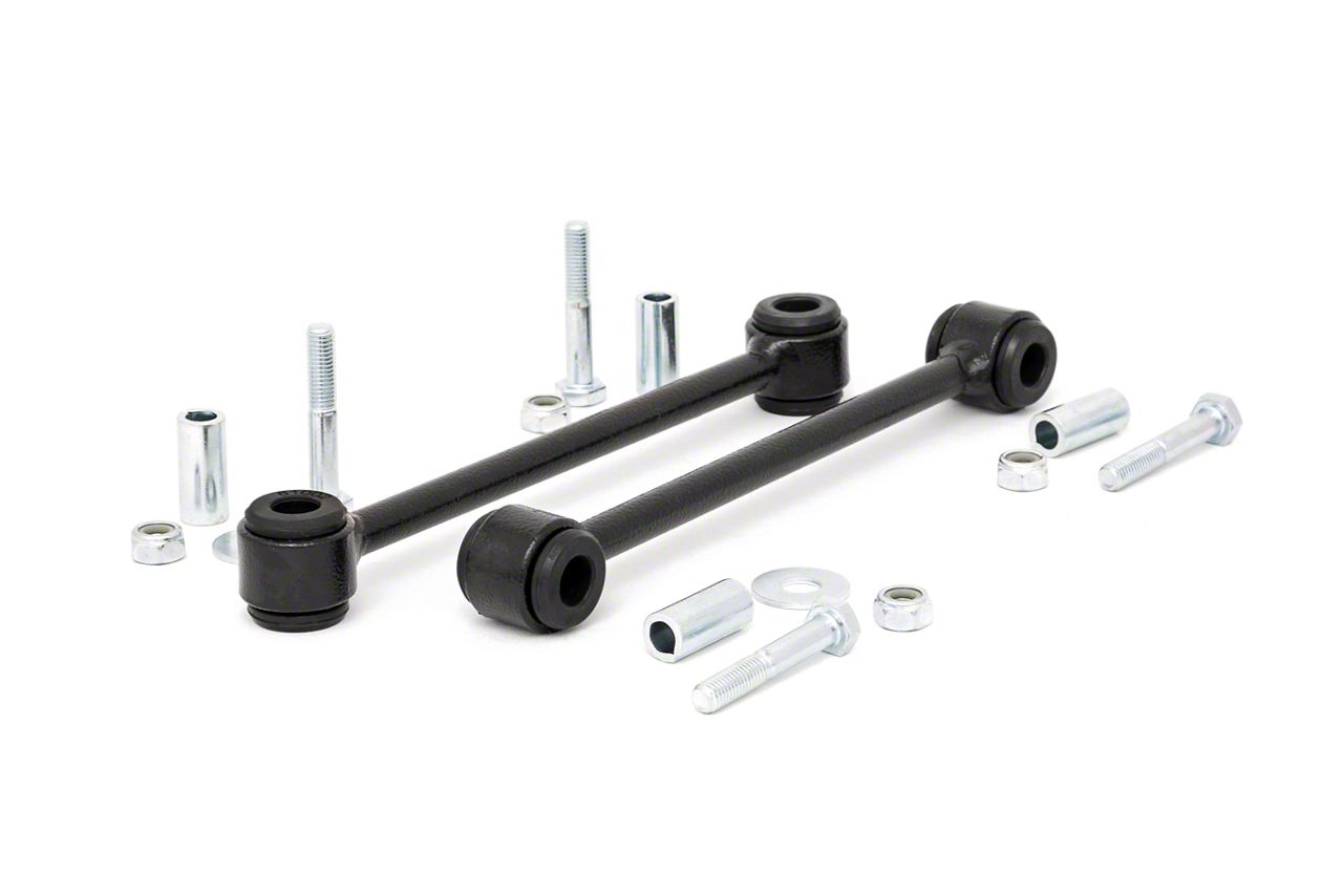 Handling Performance. Keep your Jeep Wrangler’s stability and handling on point with these Rough Country Rear Sway Bar Endlinks for 4 to 6-inch suspension lifts. With lifting your Jeep, your suspension components would need to be updated in order to bring back the driveability that you need on and off the road. These rear sway bar endlinks are exactly what you need to get back the handling lost when you lifted your Jeep.
