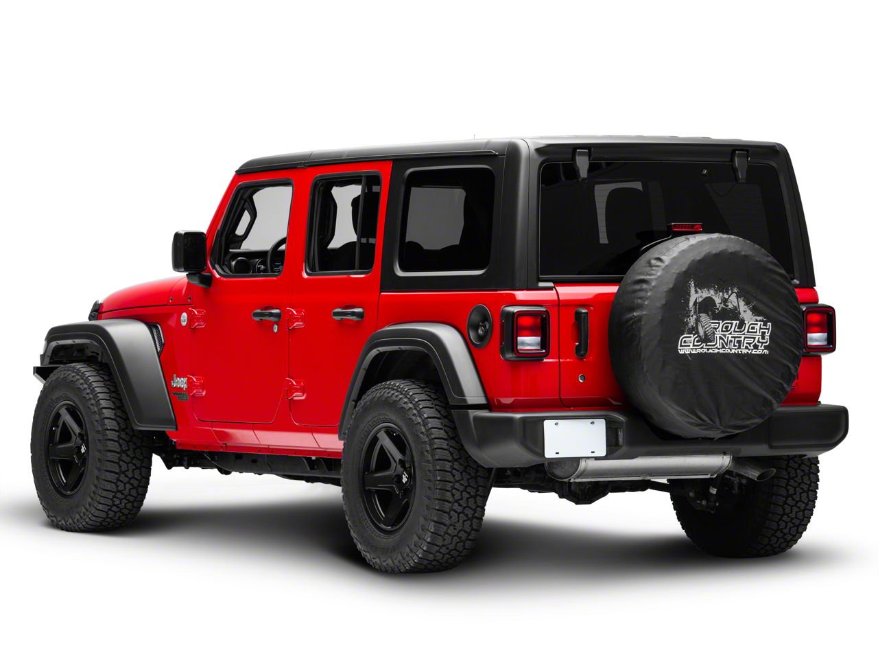 Keep Your Spare Tire Clean and Protected. Protect your spare tire from the elements with the Rough Country Spare Tire Cover. This spare tire cover is designed for a tight fit on your spare tire protecting it from damage when you're out on the trail. Featuring an eye-catching Rough Country logo and Jeep Wrangler graphic, this tire cover is also a great way of showing off your love of off-roading.