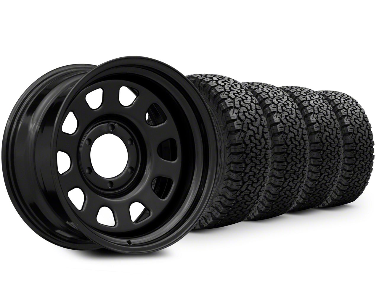 Mounted and Balanced Wheel and Tire Kit. This wheel and tire combo kit features (4) 17x9 Steel Gloss Black 6-Lug Wheels and (4) BF Goodrich All-Terrain T/A KO 265/70R17 tires that have been put together into an easy to buy kit that arrives to your door already mounted and balanced ready to be installed on your vehicle.