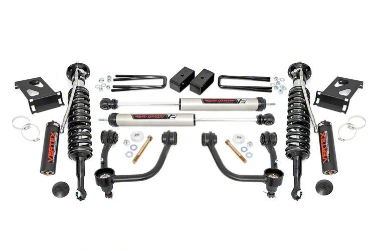 Boosts Off-Road Performance. Take your Tacoma to the next level by installing this Rough Country 3.50-Inch Bolt-On Suspension Lift Kit with Adjustable Vertex Coil-Overs and V2 Monotube Shocks. The kit lifts your truck by 3.50 inches and allows larger tires with up to 34-inch diameter to be installed. Finally, it includes Adjustable Vertex Coil-Overs and V2 Monotube Shocks to maximize the off-roading performance of your truck.