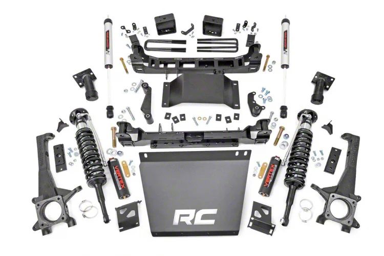 Impressive Coil-Overs and Shocks. The front Adjustable Vertex Coil-Overs and rear V2 Monotube Shocks feature Rough Country’s high-quality construction and performance. The coil-overs are crafted with an 8-stage adjustable valving that allows you to adjust their configuration so they can meet your specific needs. The V2 monotube components, on the other hand, offer lightning-fast shock absorption, giving you excellent damping performance on any road condition.