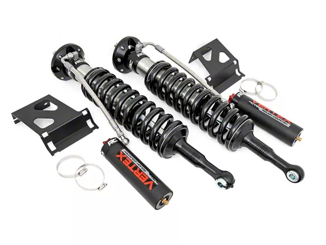 Turbulence Weakening Shocks. These Rough Country Adjustable Vertex Front Coil-Overs with 3-Inch Lift are among the most effective coil-over springs on the market. They have a tremendous monotube configuration with large-capacity remote reservoirs and high-flow piston rods that effectively gives a smoother ride. These shock absorbersalso have a stylish design that adds to the rustic look of your Tacoma. And, due totheir adaptable function, your truck is ready to go on any terrain.