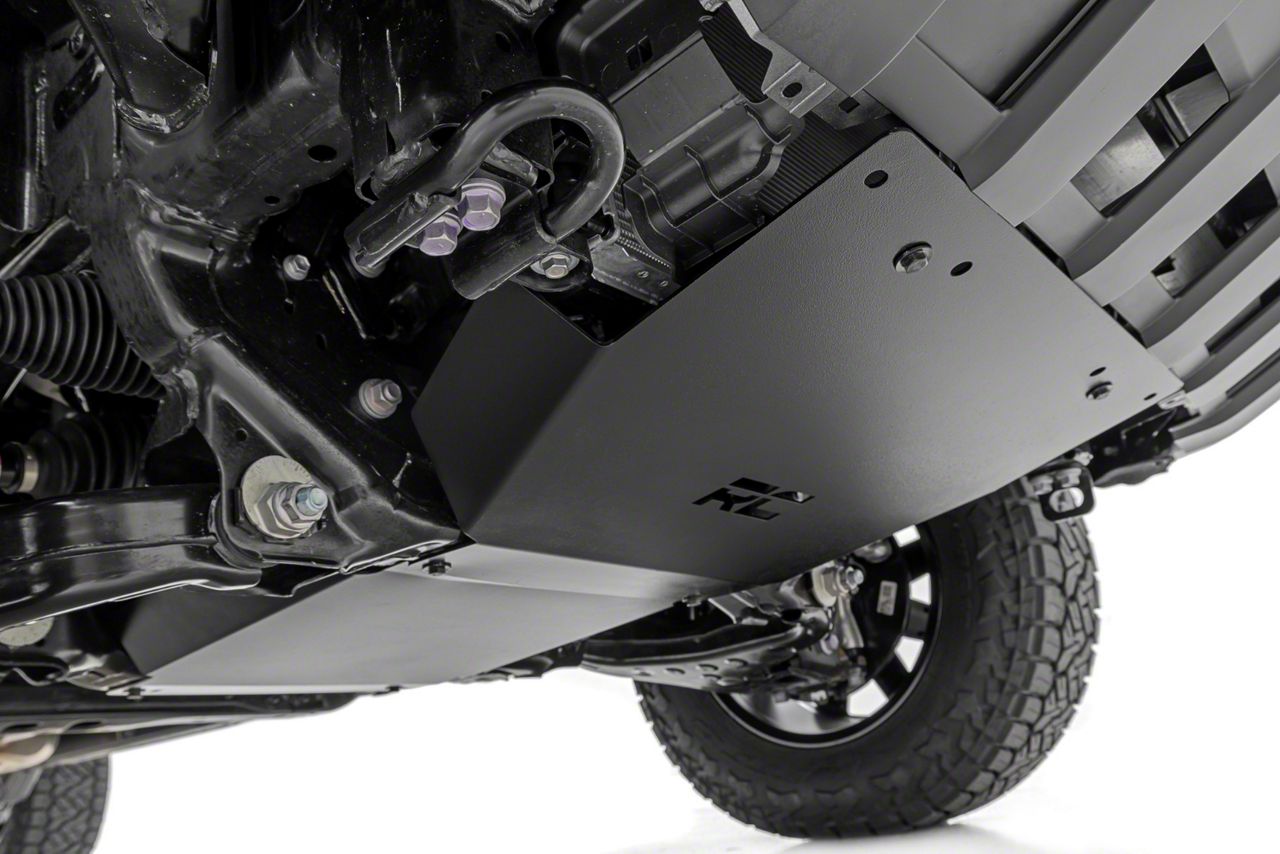 Superior Off-Road Protection. The Rough Country Engine and Transmission Skid Plates provide robust protection for your Tacoma's vital components, safeguarding the engine and transmission from off-road debris and hazards. These skid plates are designed to ensure durability and performance during demanding off-road adventures.