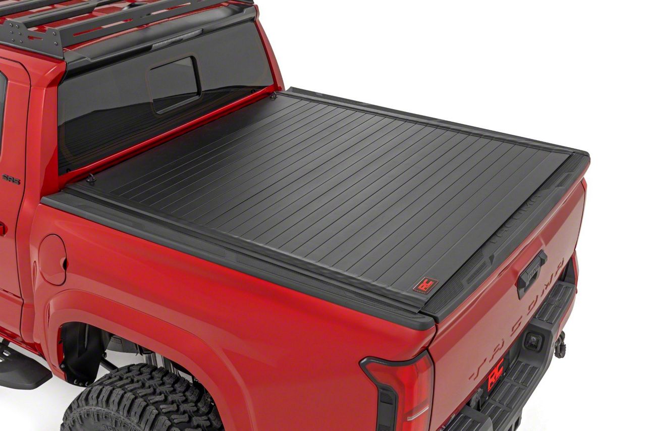 Application. This Rough Country Tonneau Cover fits 2024-2026 Toyota Tacoma models with a 5-foot bed. It offers a practical and stylish solution for securing your truck bed while maintaining easy access.