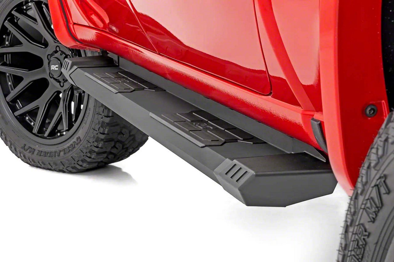 Improve Accessibility and Style with Heavy-Duty Running Boards. The Rough Country HD2 Running Boards are the perfect addition for Tacoma owners seeking improved vehicle access and added protection. These running boards feature a wide, treaded surface, providing secure footing for both driver and passengers, especially in wet or muddy conditions. Their black powder-coated finish complements your truck’s rugged aesthetic while offering long-lasting resistance to rust and corrosion.