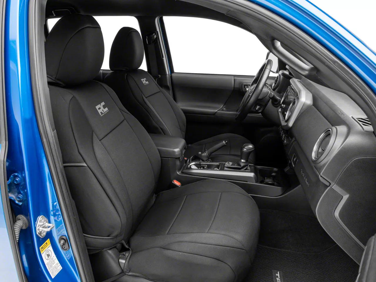 Application. The Rough Country Neoprene Front and Rear Seat Covers in Black fits all 2016-2023 Toyota Tacoma double cab models.