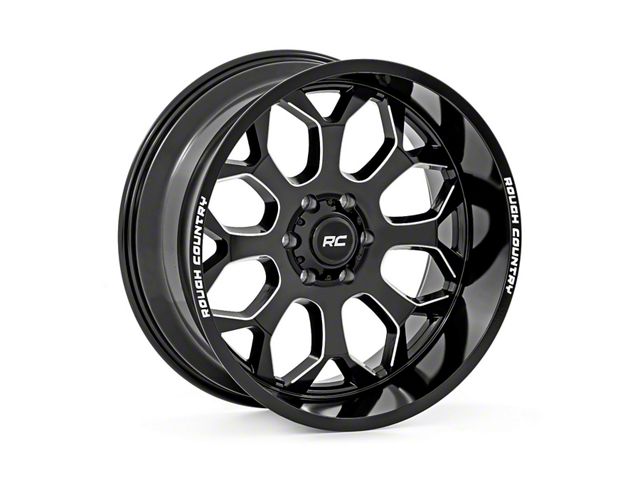 Rough Country One-Piece Series 96 Gloss Black Milled 6-Lug Wheel; 20x10 exudes an aesthetic allure that complements a range of vehicle styles. With its design rooted in Rough Country craftsmanship, this wheel accentuates your vehicle's elegant stance.
