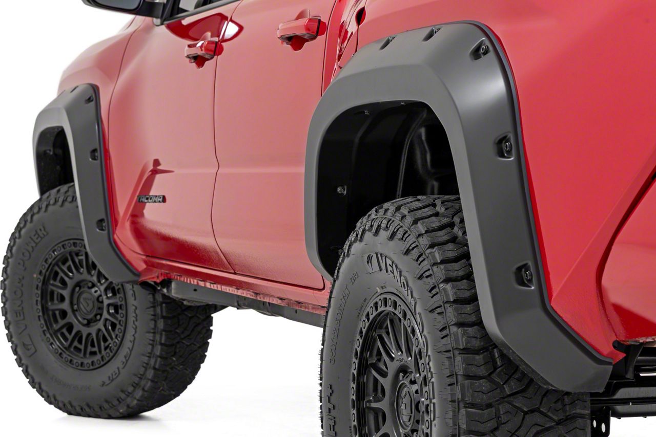 Application. These Rough Country Pocket Fender Flares fit 2024-2026 Tacoma Models, excluding Trailhunter and TRD Pro.