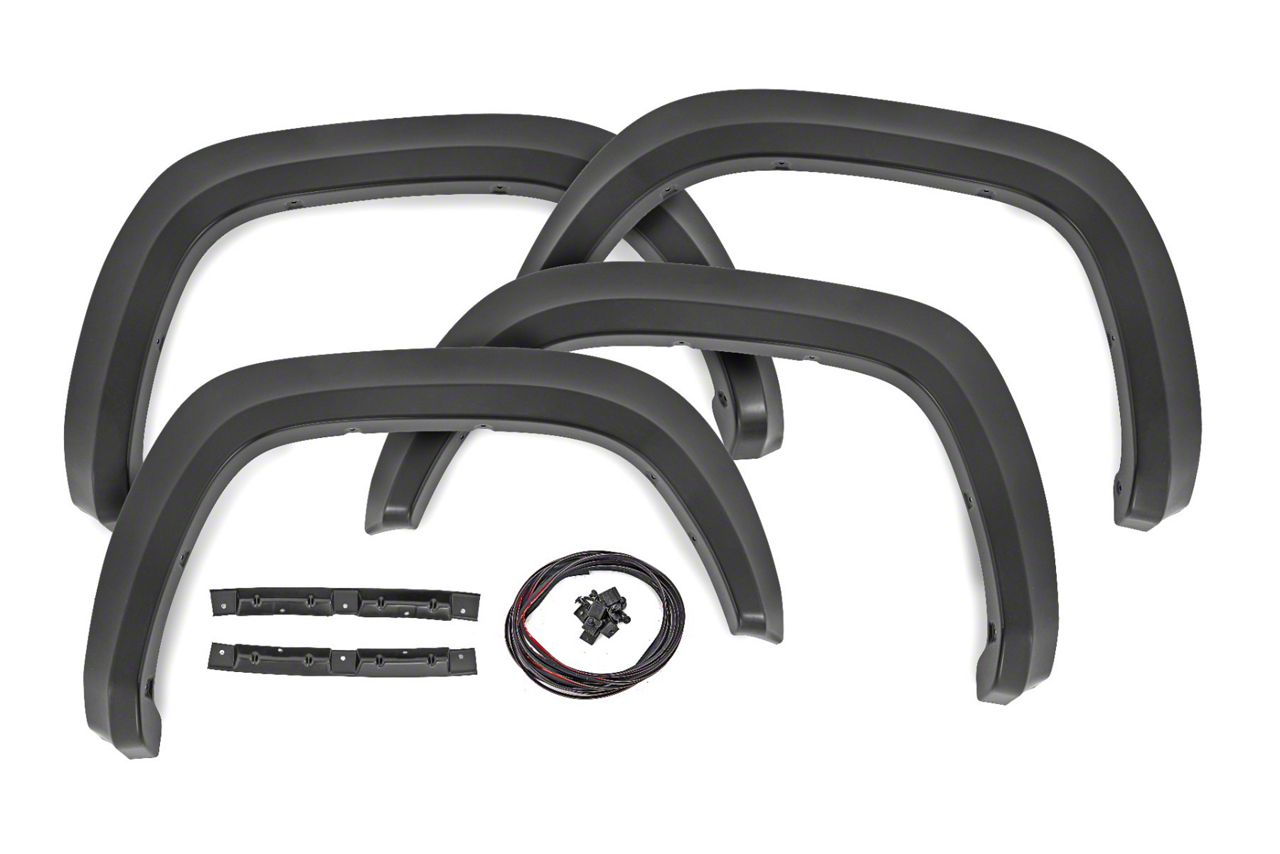 Construction and Appearance. Crafted from durable, UV-resistant ABS plastic, these fender flares are built to withstand harsh outdoor conditions without fading or cracking. The smooth, clean design omits rivets for a streamlined look, making them ideal for those seeking a more subtle, modern appearance.