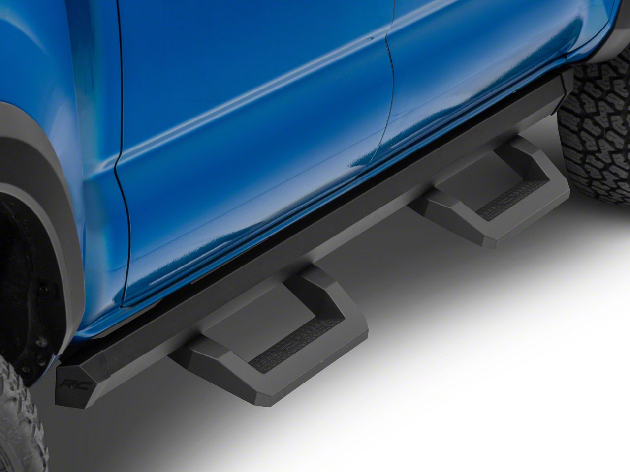 High-Quality Design. Rough Country SR2 Adjustable Aluminum Side Step Bars; Textured Black are made with high-strength aluminum for the ultimate durability and toughness. The textured black finish is designed to add an attractive style to your Tacoma without compromising its low-profile design. The molded end caps complete the look of these bars while providing a secure fit against your vehicle. It doesn't stop there though; these step bars can also be adjusted to give you the perfect ride height each time.