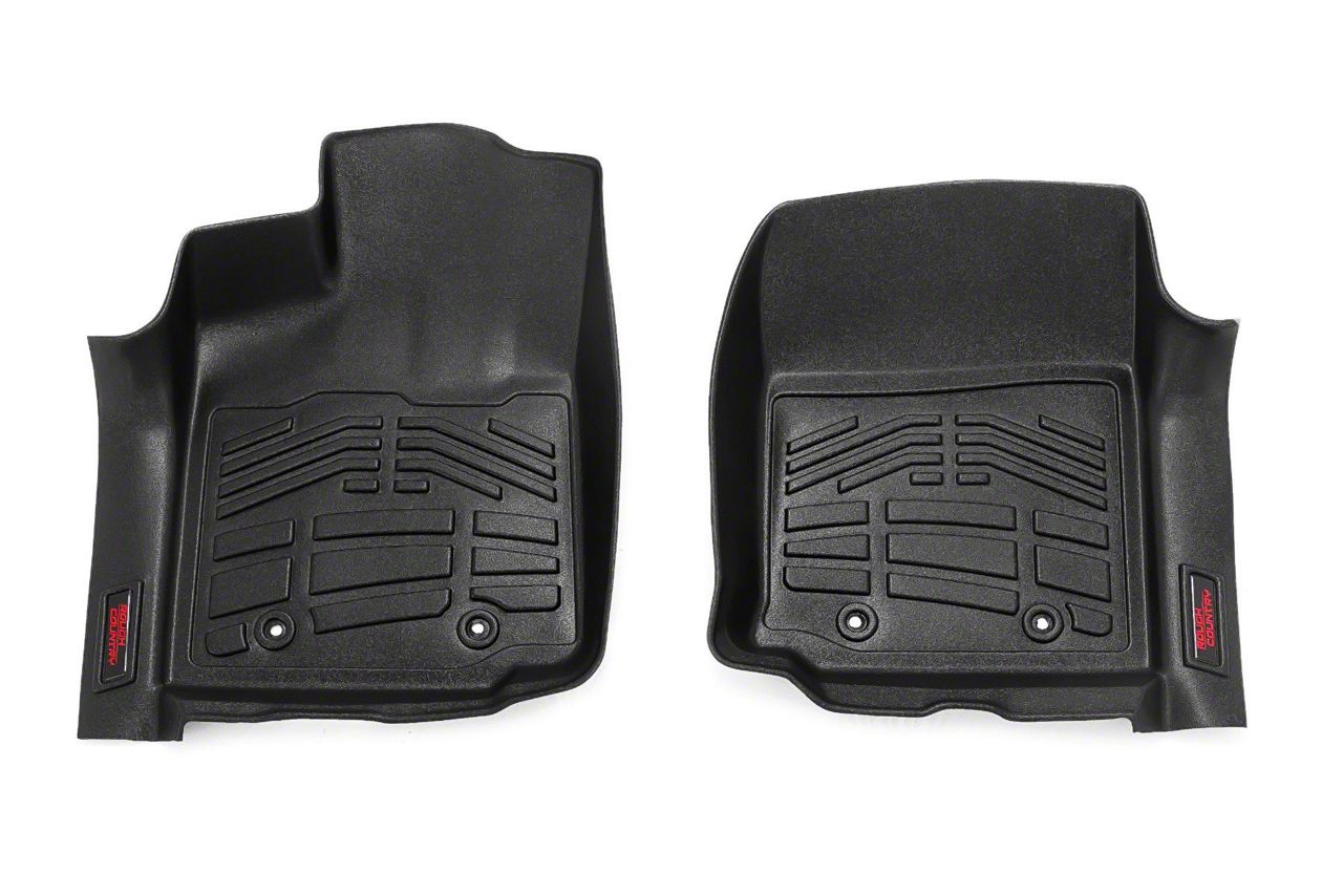 Rugged Defense, Tailored for Adventure. The Rough Country Sure-Fit Front Floor Mats are engineered to deliver maximum protection against mud, spills, and anything your boots drag in. Whether you're hauling gear, trekking through rain-soaked trails, or just navigating daily commutes, these mats serve as a barrier between your factory carpet and the chaos of real life.