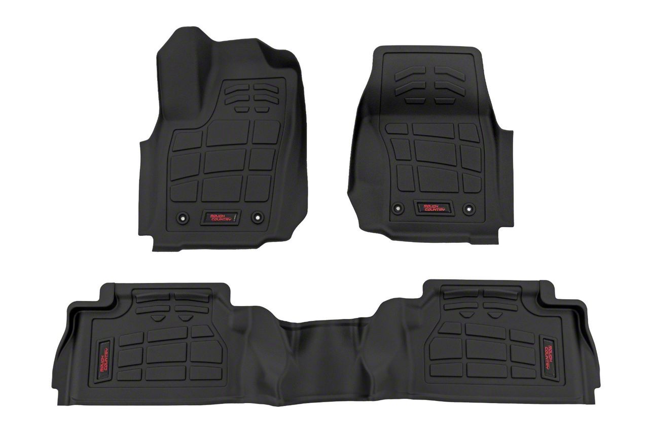 Maximum Floor Protection With a Factory Fit. The Rough Country Sure-Fit Floor Mats offer full front and rear coverage to guard against dirt, water, and daily wear. Designed specifically for your vehicle’s floorboards, they stay in place and trap debris to preserve your interior over time. Their form-fitting design ensures seamless coverage while complementing your interior’s finish.