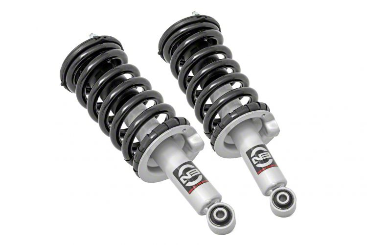 Factory Ride Quality Retention. Elevate your vehicle's performance with the Rough Country N3 Loaded Front Struts, designed specifically for 3-inch lifts. These front struts come as a pair, they are nitrogen-charged and N3-loaded ensuring a significant increase in ground clearance. These front struts feature better tire contact with the road, enhancing stability without compromising on the smooth, OEM-like ride quality.
