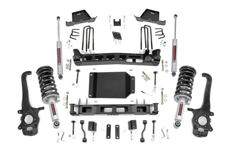 Conquer with Confidence. The Rough Country 6-Inch Suspension Lift Kit with Lifted N3 Struts is the ultimate solution for enhancing your vehicle's performance and style. With a lift height of 6 inches, this kit provides an impressive boost in ground clearance, allowing you to conquer off-road terrain with ease. Equipped with nitrogen-charged N3 shocks, this suspension lift kit ensures exceptional stability and smoothness, absorbing bumps and shocks for a comfortable ride. By maintaining the factory track width, your vehicle retains its original handling and stability characteristics.