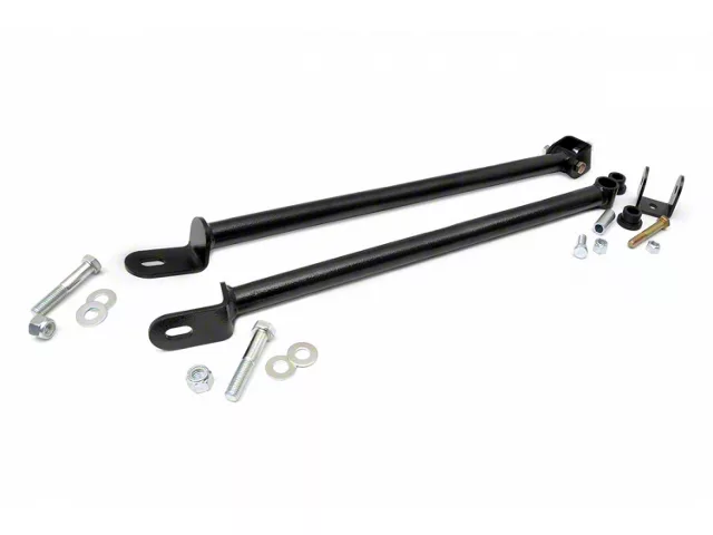 Off-Road Stability and Confidence. The Rough Country Kicker Bar Kit for 4 to 6-inch Lift is a top-of-the-line accessory designed to enhance the performance of your vehicle. Tailored for lift kits with a height range of 4 to 6 inches, this significantly reinforces the front cross-member assembly, adding exceptional rigidity and durability to your vehicle. This enhanced stability is particularly beneficial for aggressive off-road excursions, giving you the confidence to conquer challenging terrains with ease.
