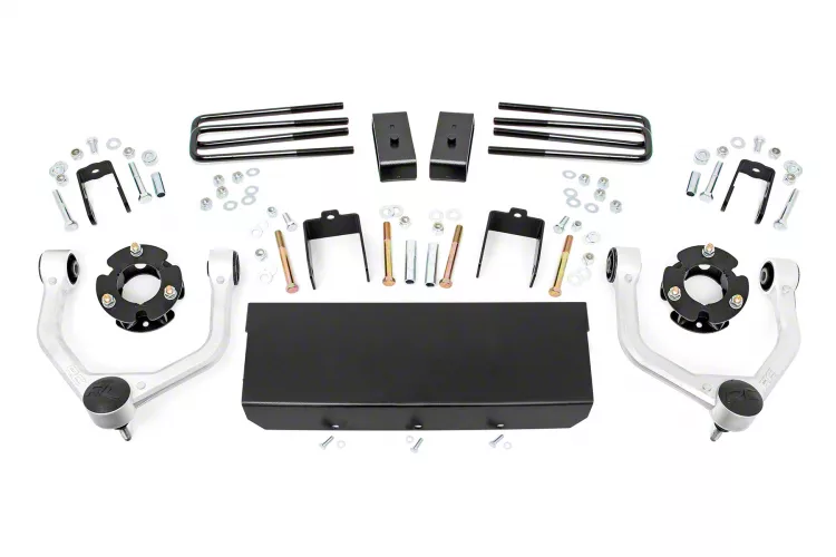 Rough Country's 3in Bolt-On Kit offers easy installation and aggressive good looks at an incredible value. Take your truck to new heights with this excellent option for Nissan Titan XD pickups.This kit features a set of high-quality, tubular Upper Control Arms designed to make alignment adjustments easier and Clevite rubber bushings for enhanced durability. These arms are designed to promote a factory-like geometry by keeping the ball joint at optimum angles after lifting. This design allows for an improved, greater range of motion from the ball-joint, with less stress, wear and tear.Also included are a set of durable strut spacers and fabricated rear blocks to provide lift height from front to rear. Once installed, this kit gives your truck plenty of ride height for up to 33in tires while offering a clean, level look from front to rear.This all-inclusive kit comes with everything you need, and installation is a piece of cake compared to other kits on the market! Featuring a primarily bolt-on installation process, this kit can be installed using common tools in a home garage, and allows the truck to be returned to stock at any time if so desired. Best of all this kit features Rough Country's Lifetime Replacement Warranty.