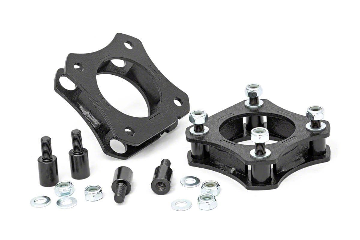 Tough and Reliable. The front strut spacers included in this 1.75-Inch Leveling Kit are made from heavy-duty materials with superior strength and excellent structural rigidity. These components are covered in a protective black powder-coated finish for long-lasting corrosion resistance. With these spacers, your Tundra can handle the most rugged terrains with ease and confidence.
