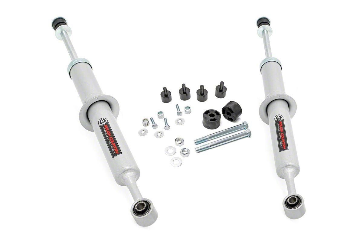 Boasts (2) Premium N3 Struts. The struts that are included in this product are Rough Country’s very own Premium N3 Struts. These struts are built with a chrome-hardened piston rod and a leak-proof piston seal, so they have the durability to withstand the toughest trails and terrains. Plus, they’re nitrogen-charged and provide a factory-like ride quality and increase the truck’s off-road stability.