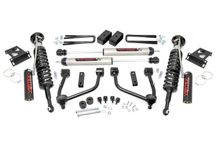 Boosts Off-Road Performance. Take your Tundra to the next level by installing this Rough Country 3.50-Inch Bolt-On Arm Suspension Lift Kit with Adjustable Vertex Coil-Overs and V2 Monotube Shocks. The kit lifts your truck by 3.50 inches and allows larger tires with up to 34-inch diameter to be installed. Finally, it includes Adjustable Vertex Coil-Overs and V2 Monotube Shocks to maximize the off-roading performance of your truck.