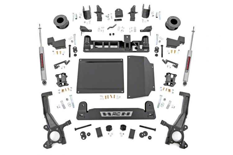 High-Grade Height Adjustment. Elevate your vehicle with the Rough Country 4-Inch Suspension Lift Kit, designed to provide an impressive 4 inches of additional ground clearance. Tackle challenging trails, overcome obstacles, and dominate uneven terrain like never before. With this lift kit, there's no adventure too daring for you and your ride.