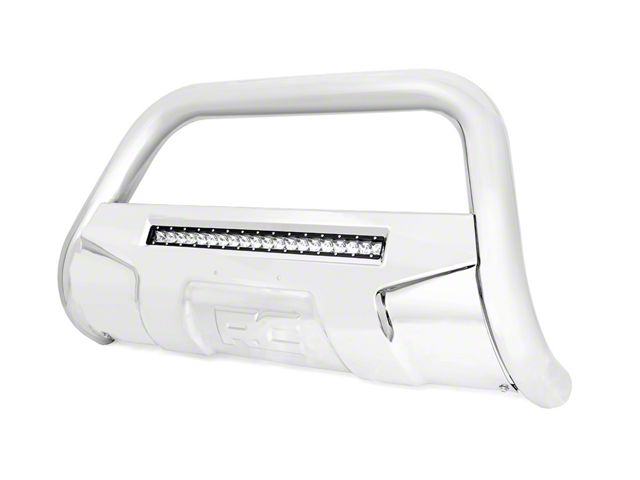 Provides Additional Off-Road Protection and Lighting. Take your Toyota Tundra’s off-road-ready build to the next level by installing Rough Country’s Bull Bar with 20-Inch LED Light Bar in Stainless Steel. With the bull bar’s durable construction and featured 20-inch LED light bar, you’ll gain the confidence to traverse the harshest terrains—day or night. Plus, the bull bar comes in a stunning stainless steel design, adding an eye-catching touch to your vehicle’s appearance.