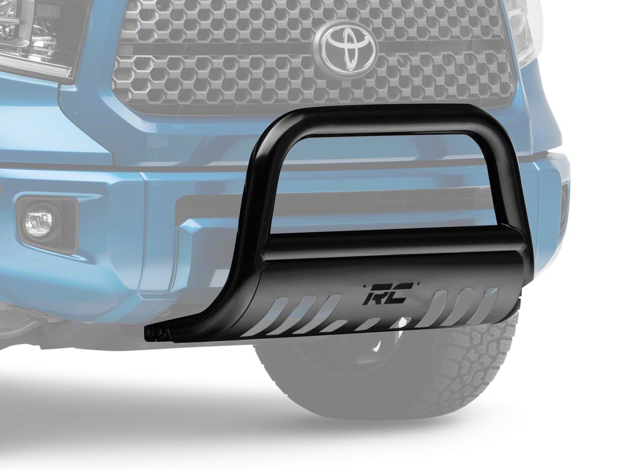 Take on the Toughest Trails With Confidence and Style. Rough Country’s Bull Bar makes a great addition to your Toyota Tundra’s off-road-ready build. Its aggressive design not only gives your truck a more powerful off-road stance, but it also helps shield its front from flying road debris and hazards. Plus, it features pre-drilled holes, so you can install additional lighting systems in a snap.