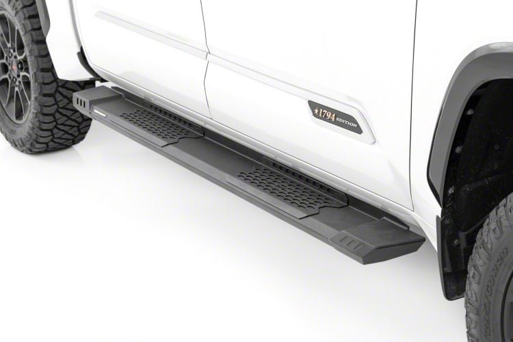 Application. The Rough Country Cab Length HD2 Running Boards are expertly structured to fit 2022-2024 Tundra CrewMax models.