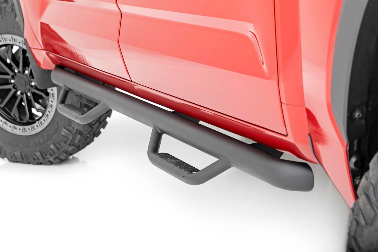 Application. The Rough Country Cab Length Nerf Side Step Bars; Black fits 2022-2023 Tundra CrewMax Models.