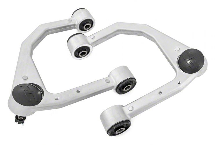 Heavy-Duty Construction. The Rough Country Forged Upper Control Arms offer superior longevity compared to stock components. Their high-quality aluminum forged steel composition and fine engineering ensure they will outlast and outperform standard control arms, making them a wise investment for any off-road enthusiast.