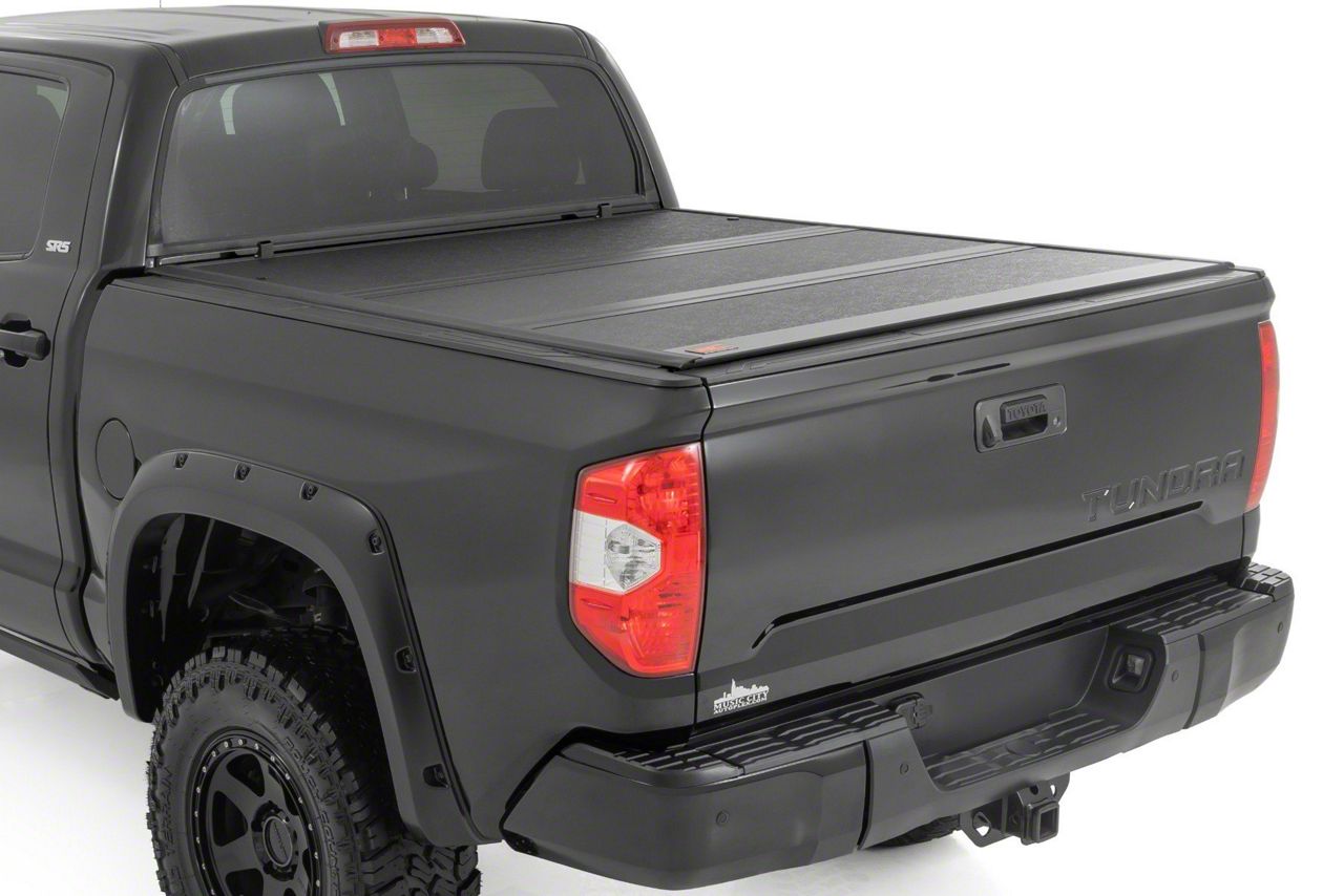Application. Rough Country Hard Low Profile Tri-Fold Tonneau Cover fits 2007-2021 Tundra models with a 5-1/2-foot bed.