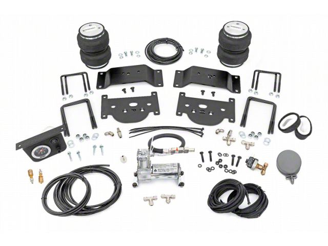 Rough Country Rear Air Spring Kit with Onboard Air Compressor for 0 to 6-Inch Lift. The Rough Country Rear Air Spring Kit with Onboard Air Compressor for 0 to 6-Inch Lift is an excellent air spring kit with push-to-connect air fittings and high-quality double convoluted airbags.