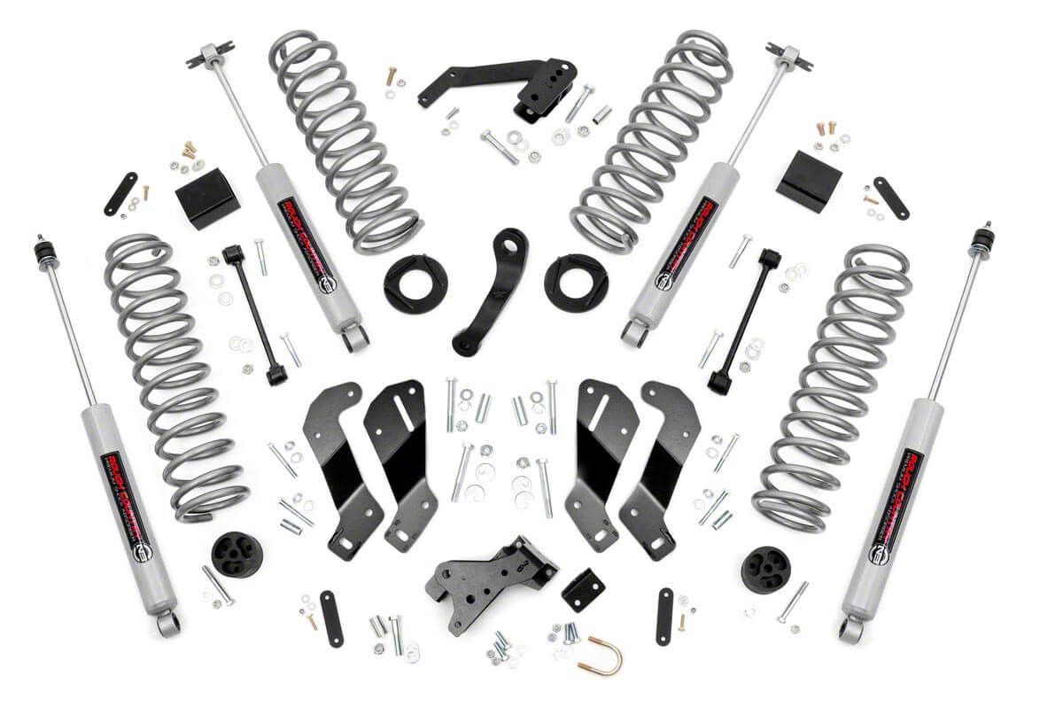 Go Anywhere. Turn your 2007-2018 4-Door Unlimited Jeep Wrangler into the smoothest-riding, best-handling JK on the street or trail by installing a Rough Country 3.5-inch Suspension Lift Kit with Control Arm Drop Brackets. With 3.5-inches of lift that can accommodate up to 35 x 12.50 tires, there are no obstacles you can't tackle with this Rough Country kit. With beefier Performance N3 Series Shocks, lifted coil springs, and control arm drop brackets you will have a rig that can go almost anywhere.