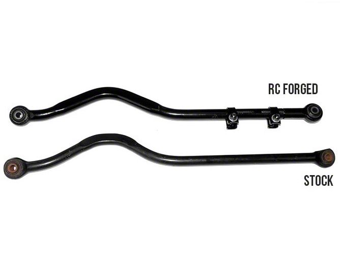 Forged Strength. The Rough Country Forged Front Adjustable Track Bar is constructed from forged steel for extreme strength and is just what you'll need to hit the trails hard with a lift. Weighing in at 16 pounds, this heavy duty track bar is twice the weight of your JK's factory equipment. Its ends are equipped with Clevite brand, OEM style rubber bushings for the same reliable handling you'd expect from stock parts.