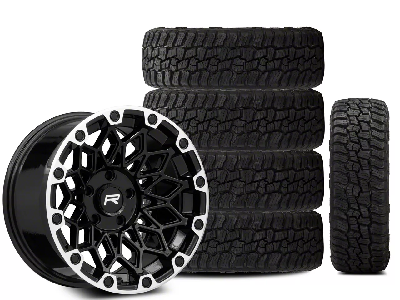 Mounted and Balanced Wheel and Tire Kit. This wheel and tire combo kit features (5) 17x9 Rovos Wheels Guban Gloss Black Machined Wheels and (5) Milestar Patagonia AT/R All-Terrain 33" - 285/70R17 tires that have been put together into an easy to buy kit that arrives to your door already mounted and balanced ready to be installed on your vehicle.