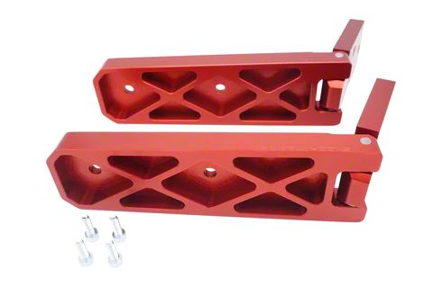 Striking Red Finish. In addition to their durability and easy installation, these hinges also come with a striking red anodized finish that will complement the look of any Jeep Wrangler JL. They are paired with stainless steel hardware and are a direct bolt-on product, ensuring a secure fit for your vehicle.