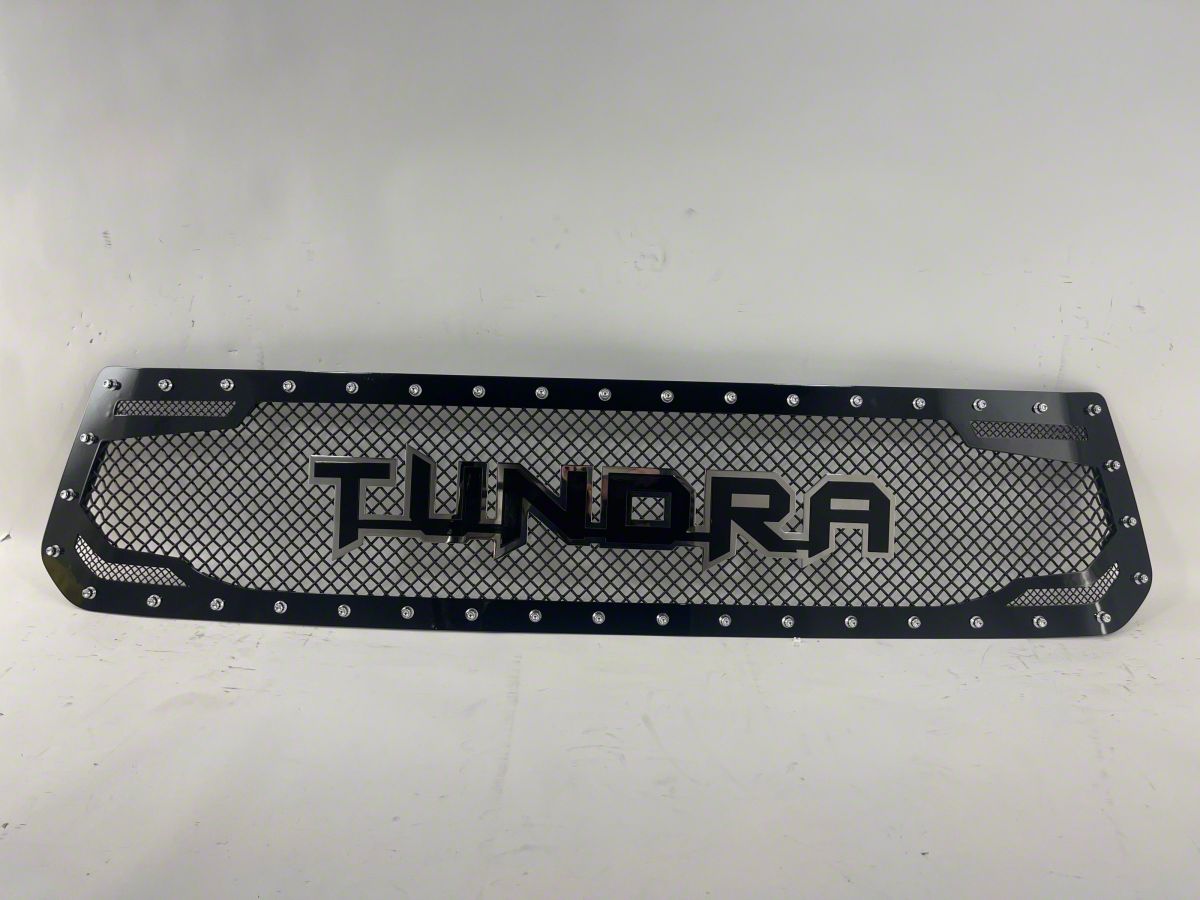 Enhanced Vehicle Frontal Aesthetics. The Royalty Core RC2 Twin Mesh Upper Grille Insert is a premium upgrade for 2018-2021 Tundra models, featuring a matte and glossy black finish with a distinctive Tundra emblem design. This grille insert not only enhances the vehicle's appearance but also offers increased airflow and protection to the engine bay. Its design maximizes the passage of air, which is vital for cooling critical engine components, while the stainless steel woven mesh provides a barrier against road debris, ensuring both functionality and style.