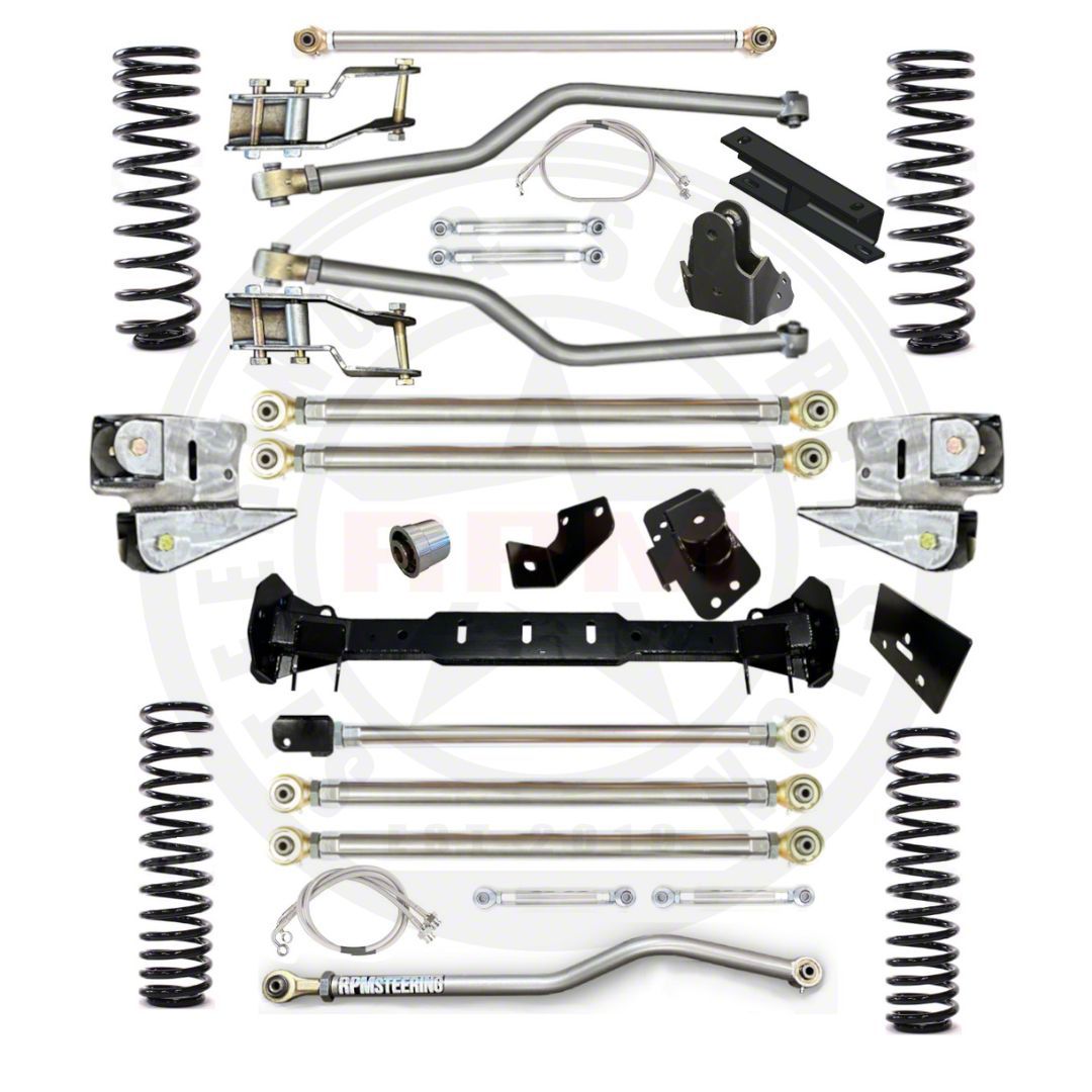 Application. This RPM Steering Ultimate Long Arm Suspension Lift Kit fits 2020–2025 Jeep Gladiator JT 3.6L models with aftermarket axles. It supports up to 37-inch tires and transforms your Gladiator into a serious off-road machine with improved travel, geometry correction, and articulation.