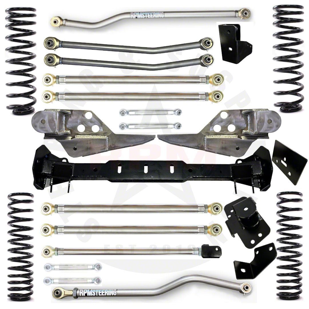 ExtremeTerrain no longer carries the RPM Steering 2.50-Inch Ultimate Aluminum Long Arm Suspension Lift Kit with Rubicon Ultimate Aluminum Sway Bar Links and 2.50-Inch Lower Links (20-26 3.0L EcoDiesel, 6.4L HEMI Jeep Wrangler JL w/ Stock Axles). Please check out Jeep CJ7 Lift Kits for 1976-1986 Wrangler for an updated selection.