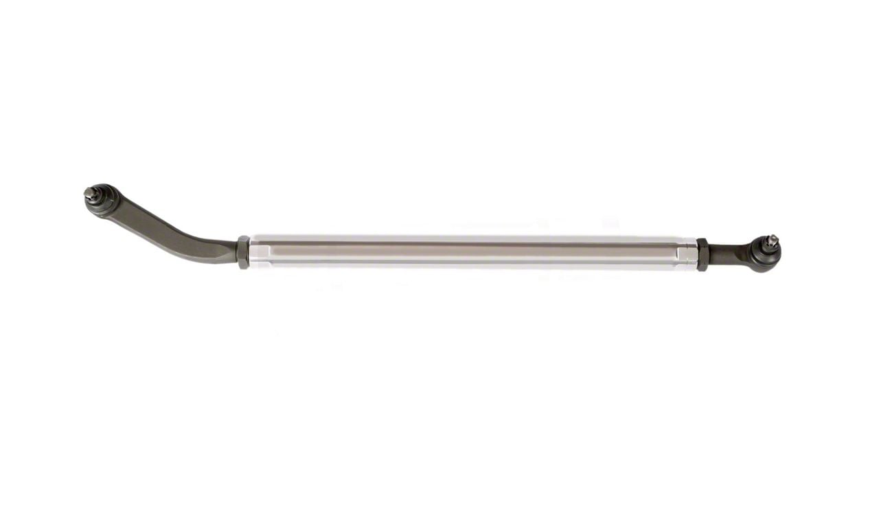 Construction and Appearance. Constructed from solid 2-inch 7075 T6 cold-finished aluminum, the drag link offers an outstanding strength-to-weight ratio. It features hexed ends for easy adjustments and comes equipped with 1.25-inch forged tie rod ends and serrated Belleville washers. The system is compatible with stock JK mounts or can be flipped to the top of the knuckle for improved geometry.