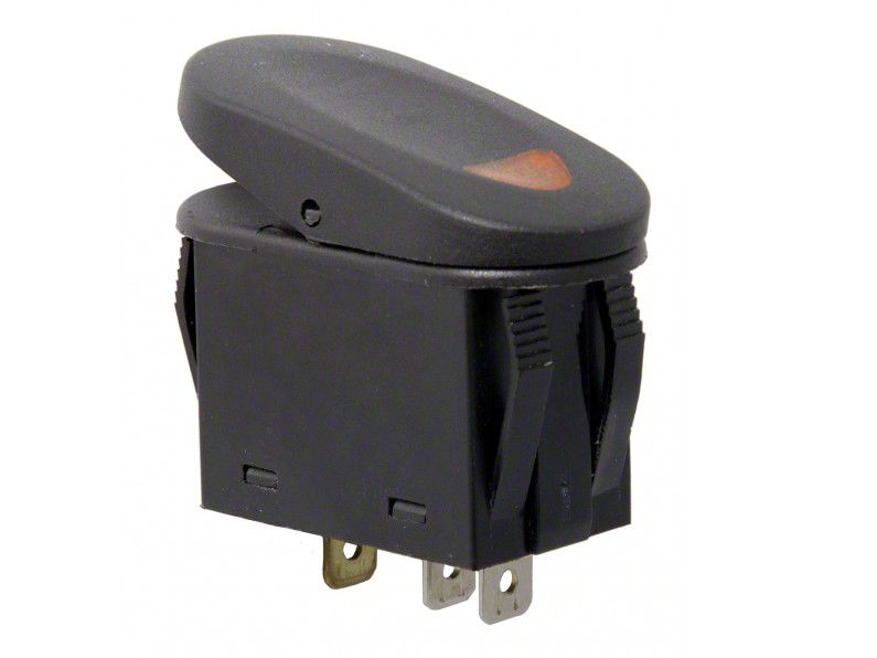 Performance Illuminated. If you want an auxiliary switch that's as tough as your Jeep, then the Rugged Ridge two position rocker switch with indicator light is the right answer for you. Featuring a marine grade construction with heavy duty, water resistant internal parts this switch's robust mechanism is perfect for auxiliary lighting and accessories. This switch's indicator illuminates a bright amber when engaged for instant visibility night or day.