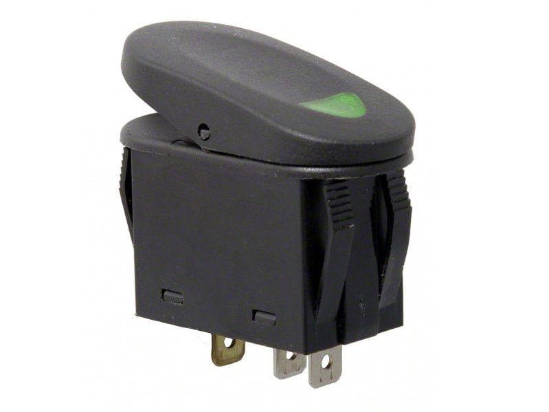 Performance Illuminated. If you want a tough auxiliary switch, the Rugged Ridge two position rocker switch with indicator light is the right answer for you. Featuring a marine grade construction with heavy duty, water resistant internal parts this switch's robust mechanism is perfect for auxiliary lighting and accessories. This switch's indicator illuminates a bright green when engaged for instant visibility night or day.