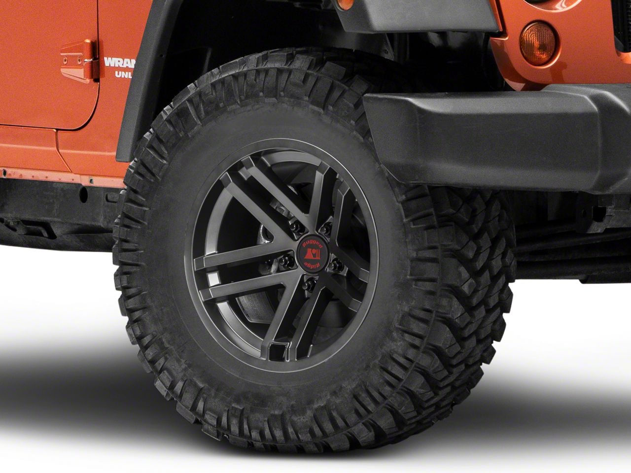 Satin Finish. Sleek and inviting, the Jesse Spade Wheel is finished in a satin gun metal finish designed to complement your Wrangler's exterior for more custom look. It comes equipped with a black center cap finished with a bold red Rugged Ridge logo.