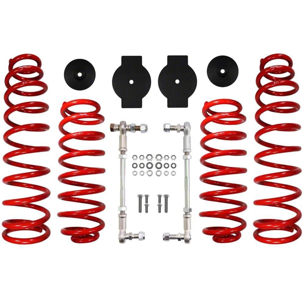 Entry Level Lift. Made for the Jeep Wrangler JK, this RSO Suspension Coil Spring Suspension Lift Kit comes in a racing red and matte black finish. An entry-level all-in-one kit, this kit offers a lift of 2.50 inches and includes coil springs, adjustable sway bar end links, and bump stop extensions for easy installation.