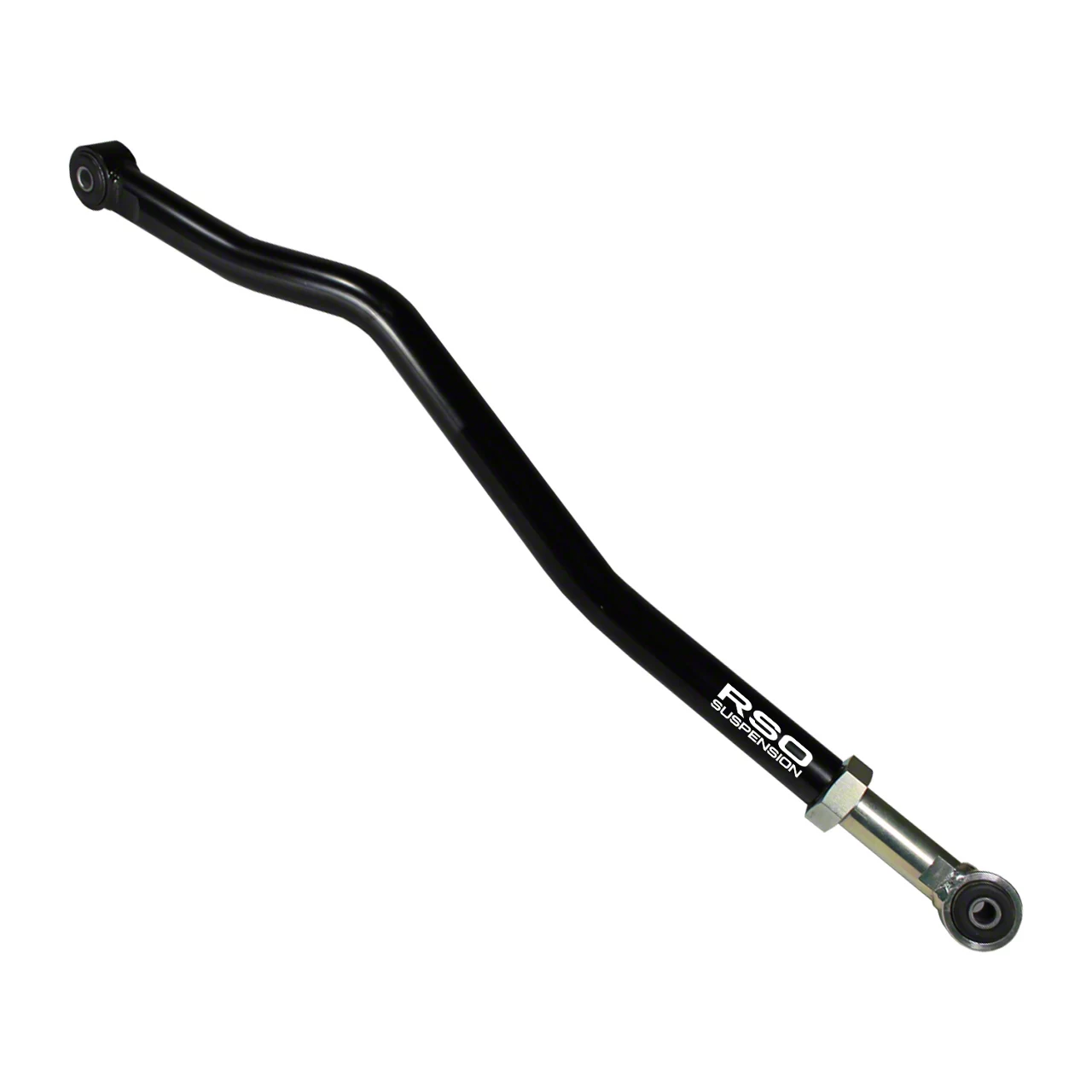 Dent-Proof Steelwork. The RSO Suspension Heavy Duty Adjustable Front Track Bar is constructed from heavy-grade aluminum steel which is well-known for its universal formidability against impacts, rubble, and chemical exposure, ensuring lifetime operability and easy maintenance. The surface is also coated in a deep black powder coat finish that helps negate rusting and damage.